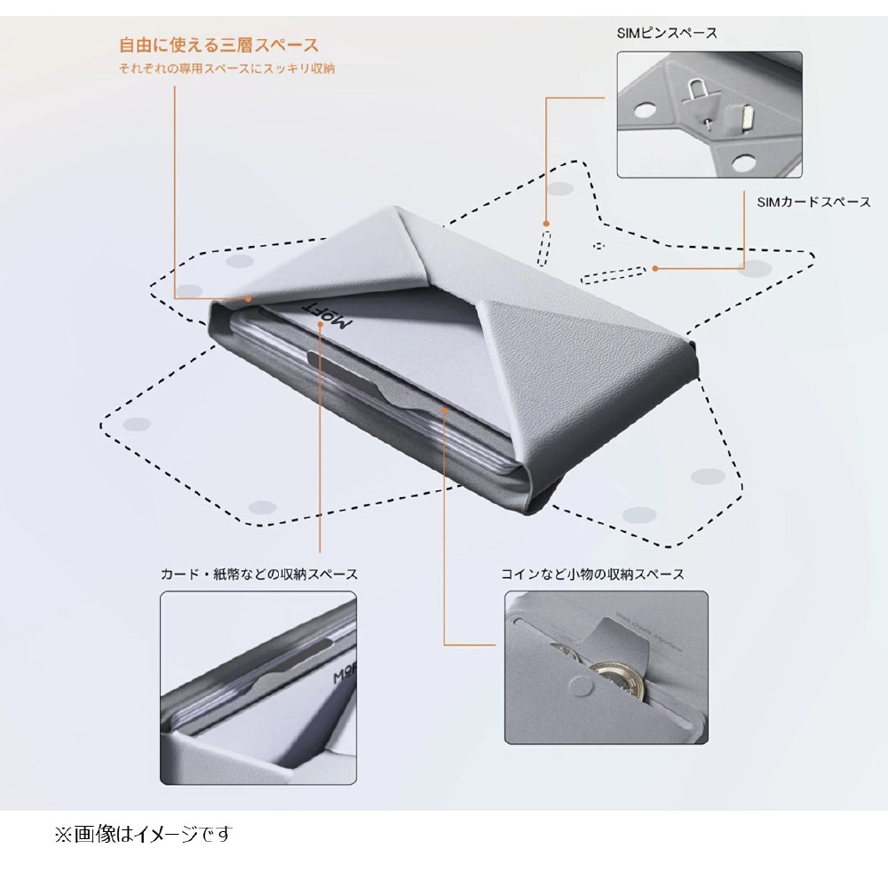 MagSafe非対応のスマホも付属のアイアンリングをスマホケースに貼り付ければ「MOFT多機能カードケース」をご使用いただけます