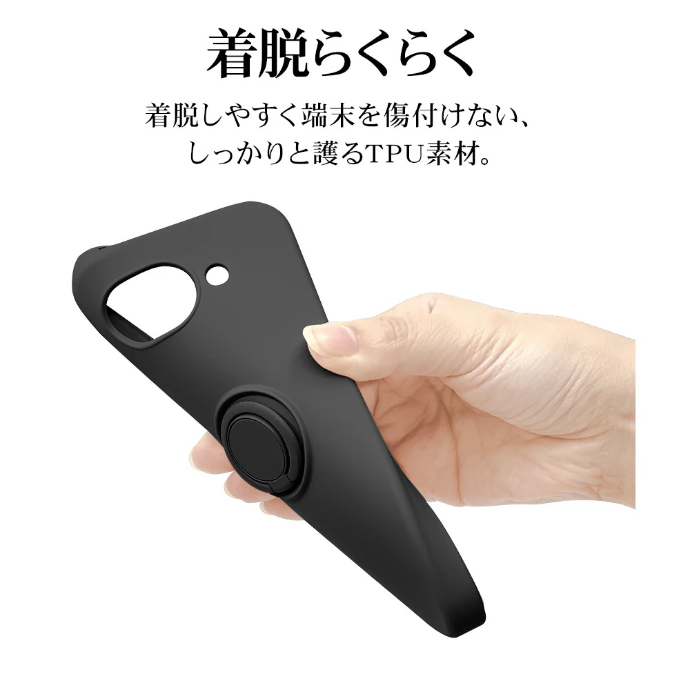 本製品はさらさら質感で指紋が付きにくいTPU素材の、落下防止リング付き背面ケースです。