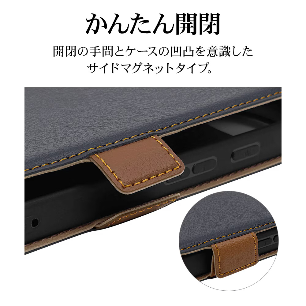 本製品は液晶画面側と背面側の両面を保護できる薄型で持ちやすい手帳型ケースです。