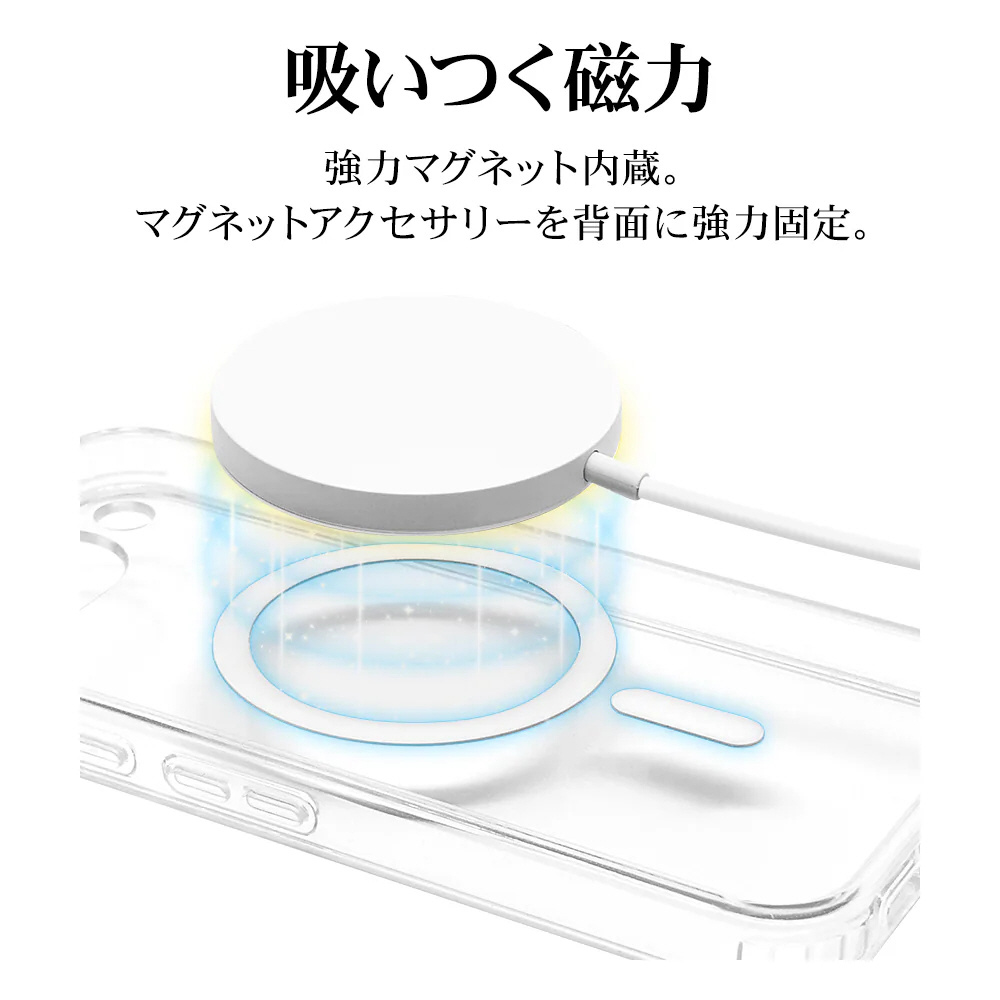 本製品はマグネットアクセサリをケースの上から固定できる、側面はTPU、背面はポリカーボネート素材のハイブリッド背面ケースです。