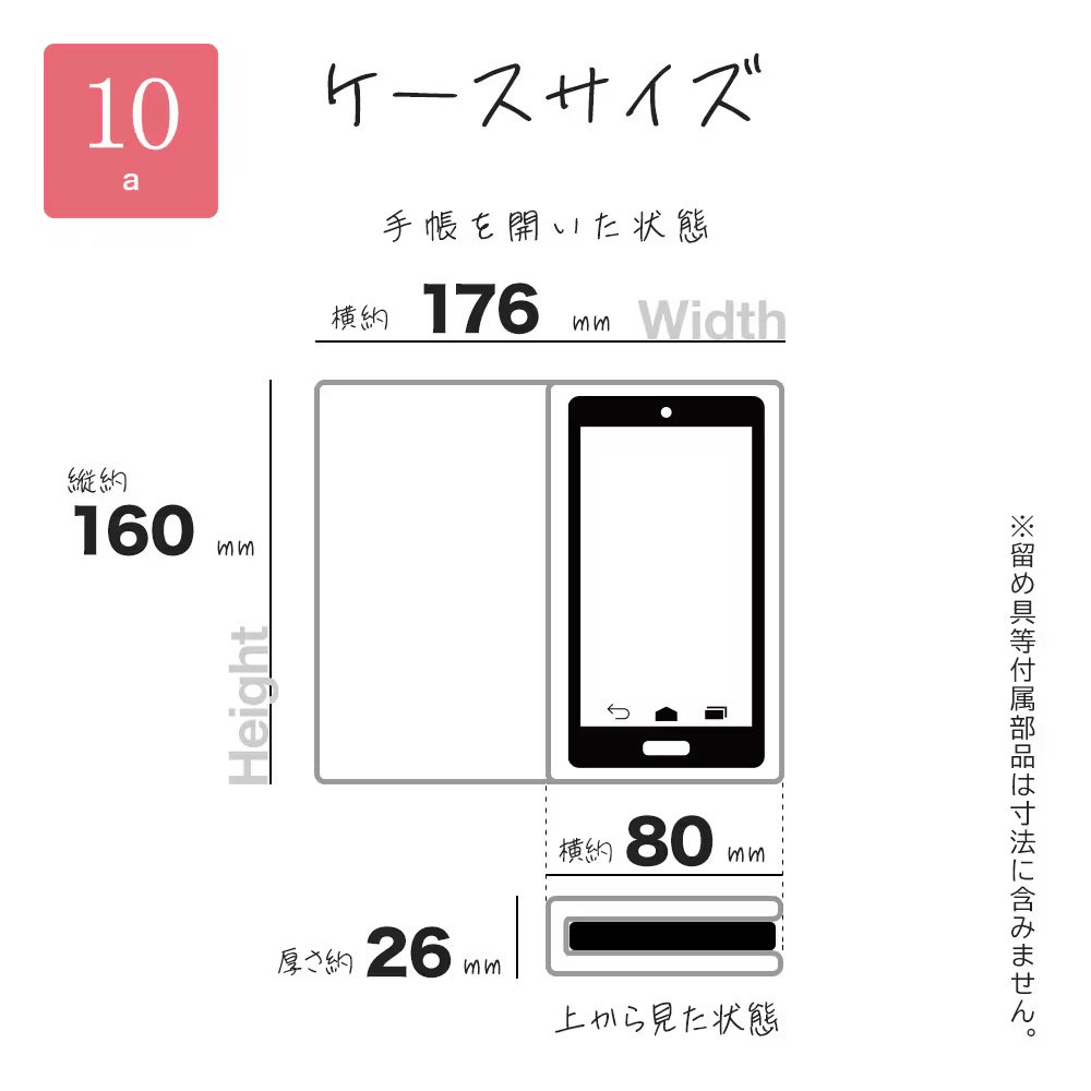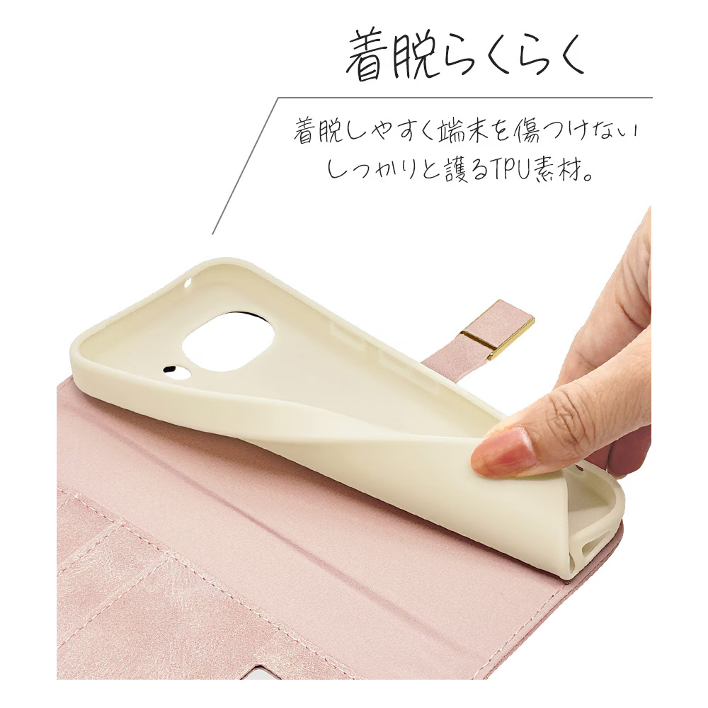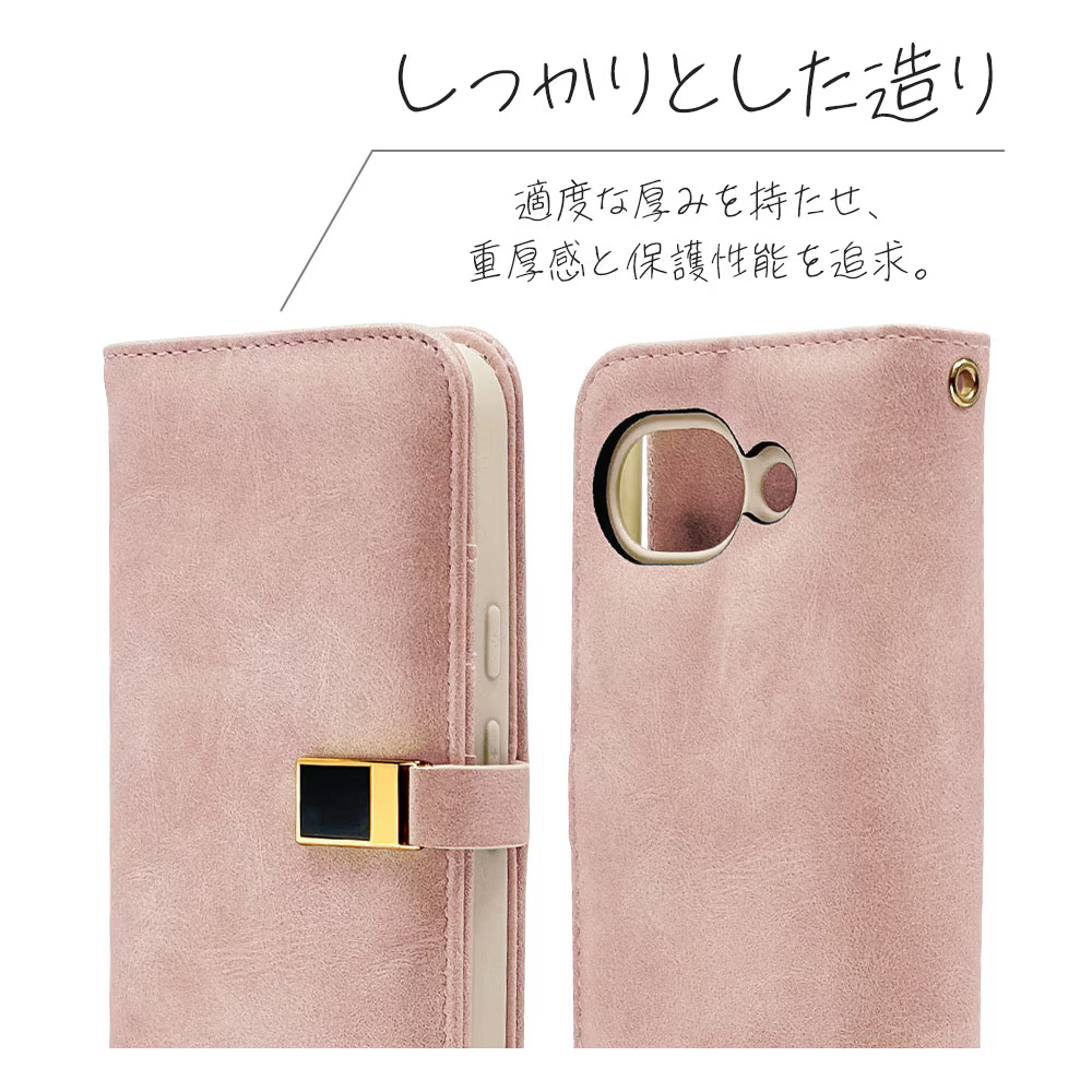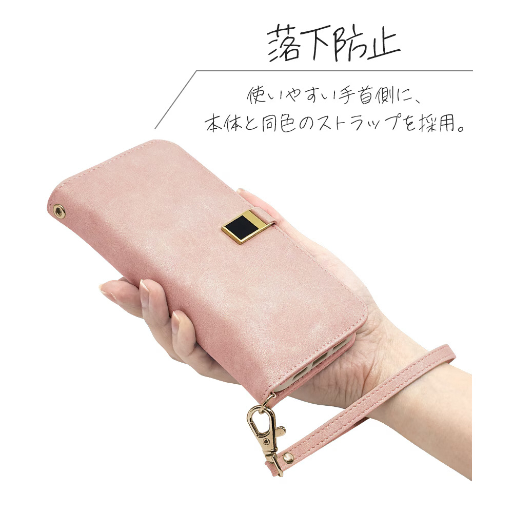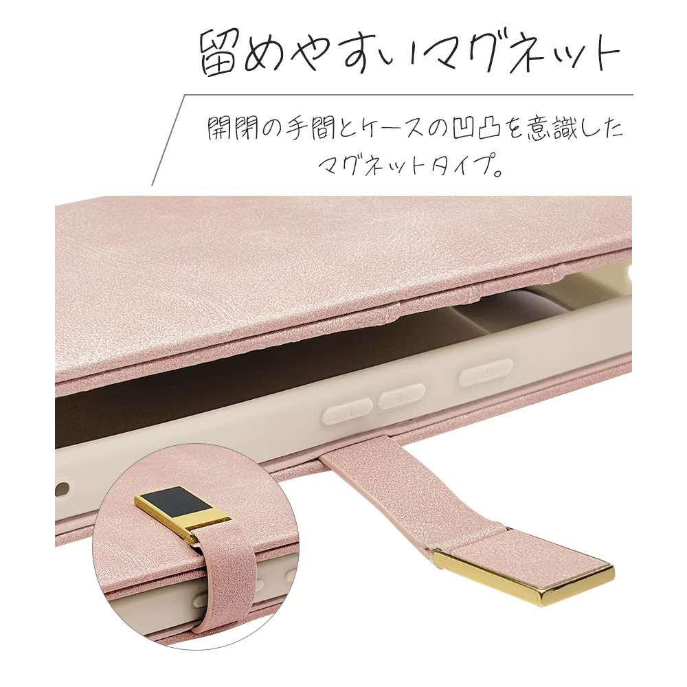 本製品は液晶画面側と背面側の両面を保護できるハンドストラップ付きの手帳型ケースです。