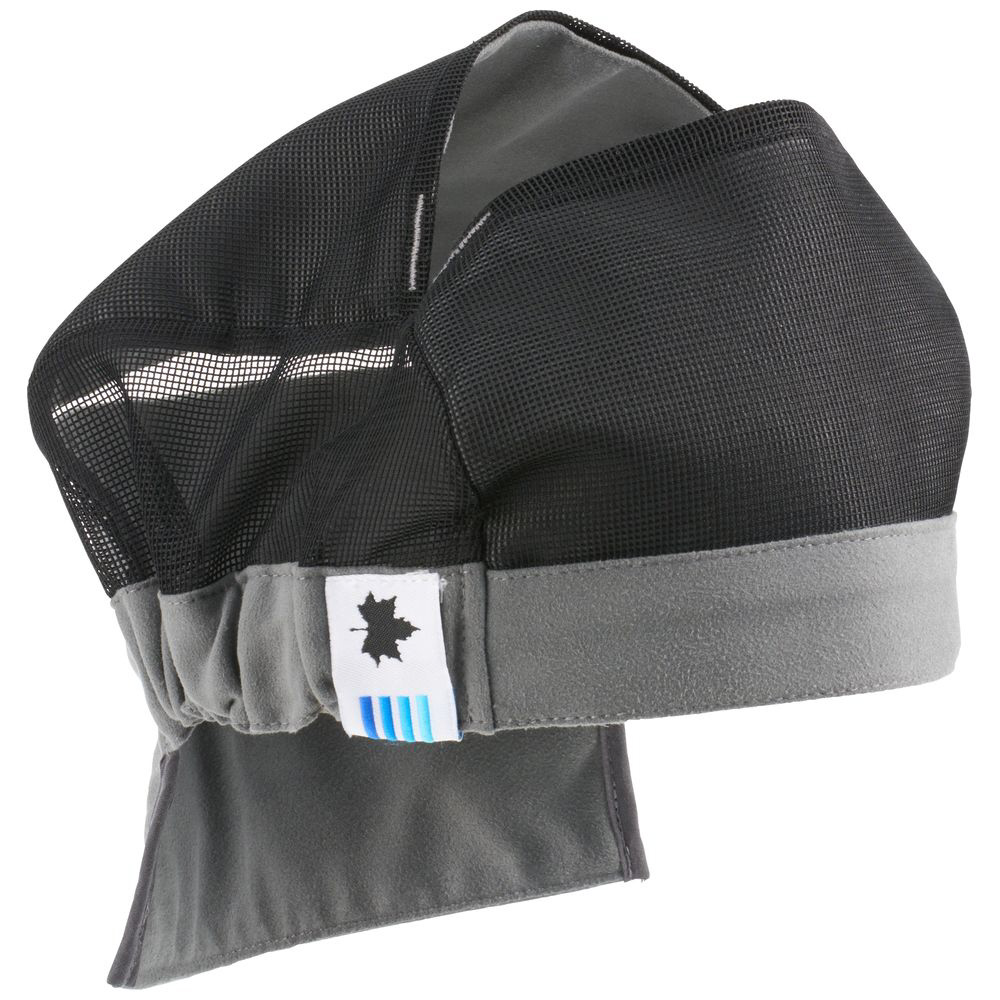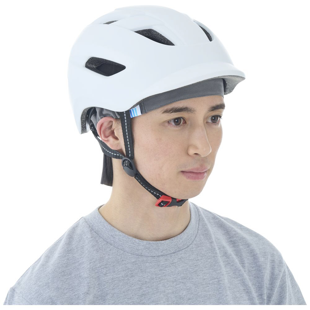 帽子のようにサッと装着でき、キャップやヘルメットの下にも使用可能。