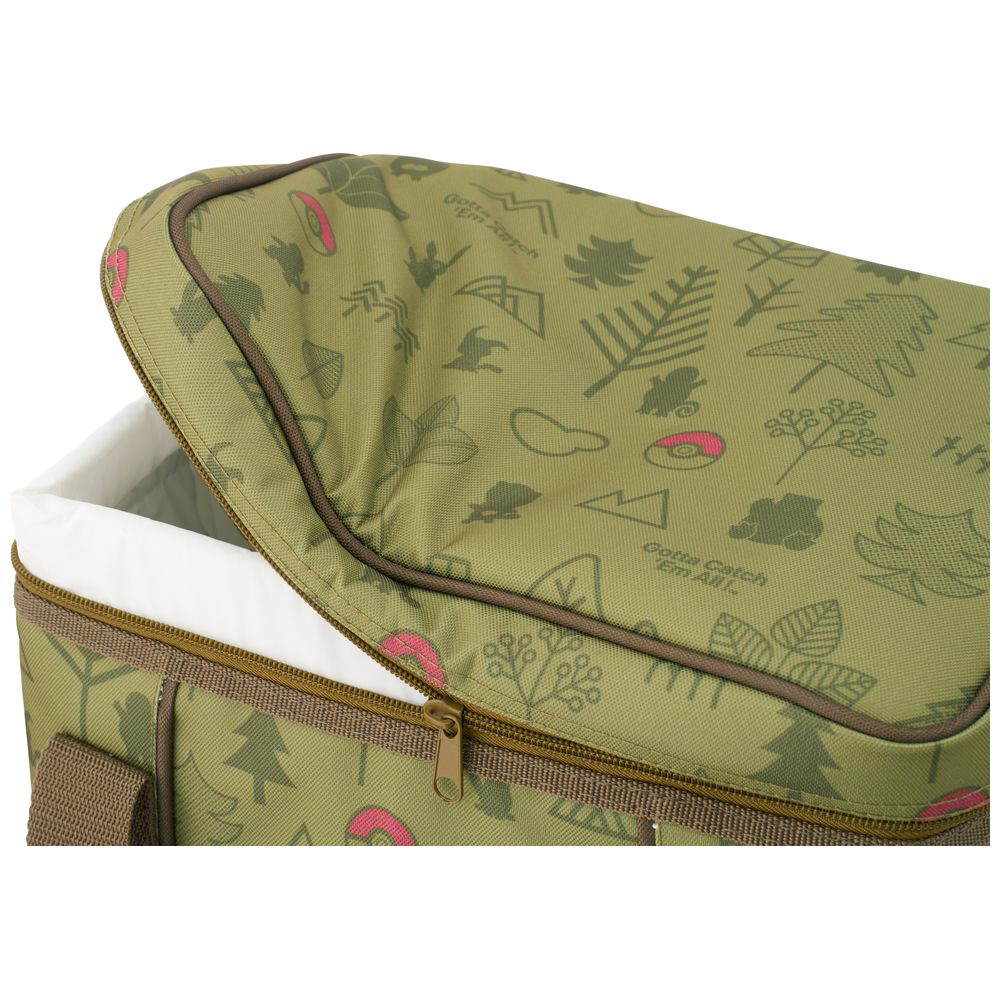 自然モチーフの中にポケモンたちのシルエットを散りばめたデザインで、アウトドアを楽しく彩ります。