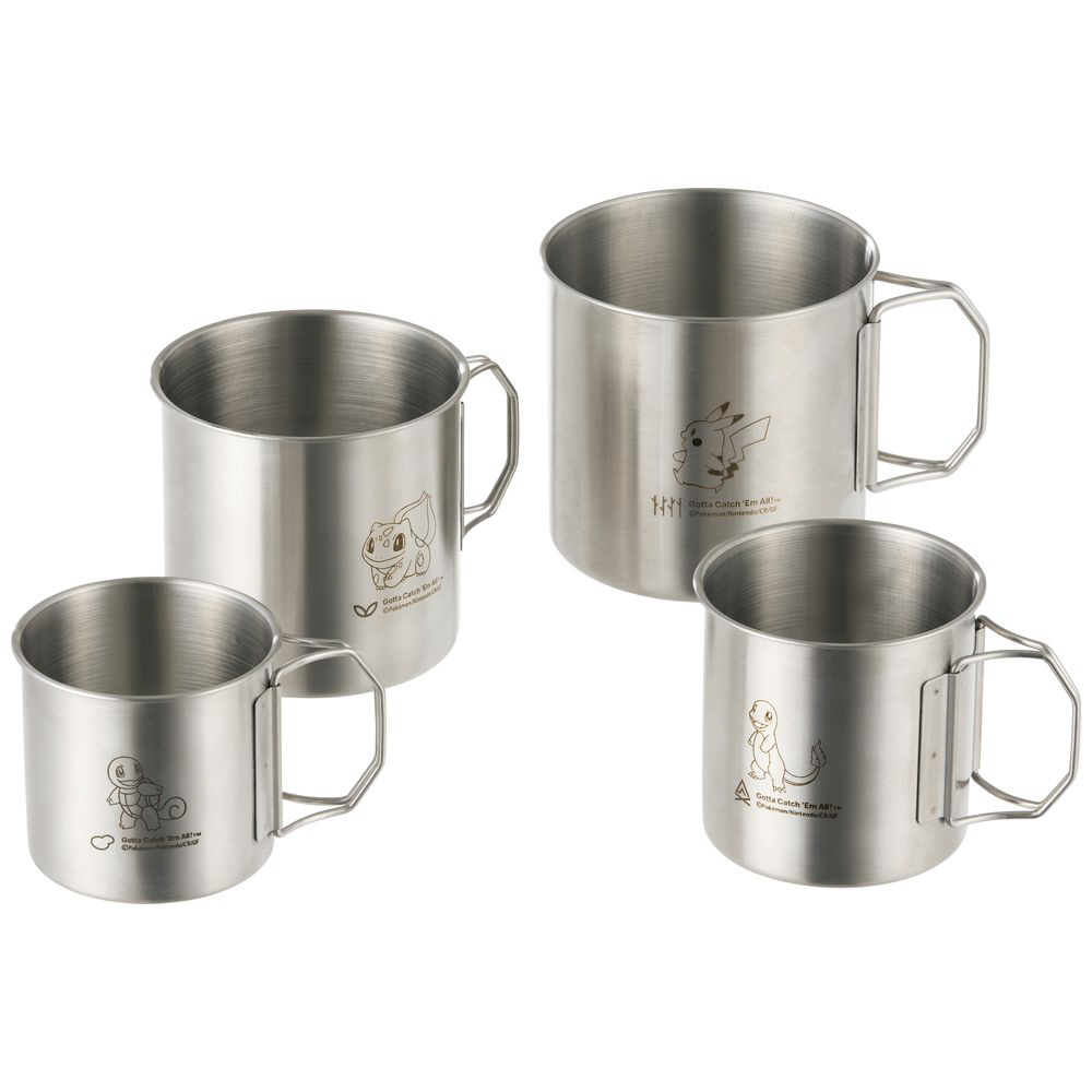 ピカチュウ・フシギダネ・ヒトカゲ・ゼニガメがワンポイントデザインの、ステンレス製マグ4個セット。