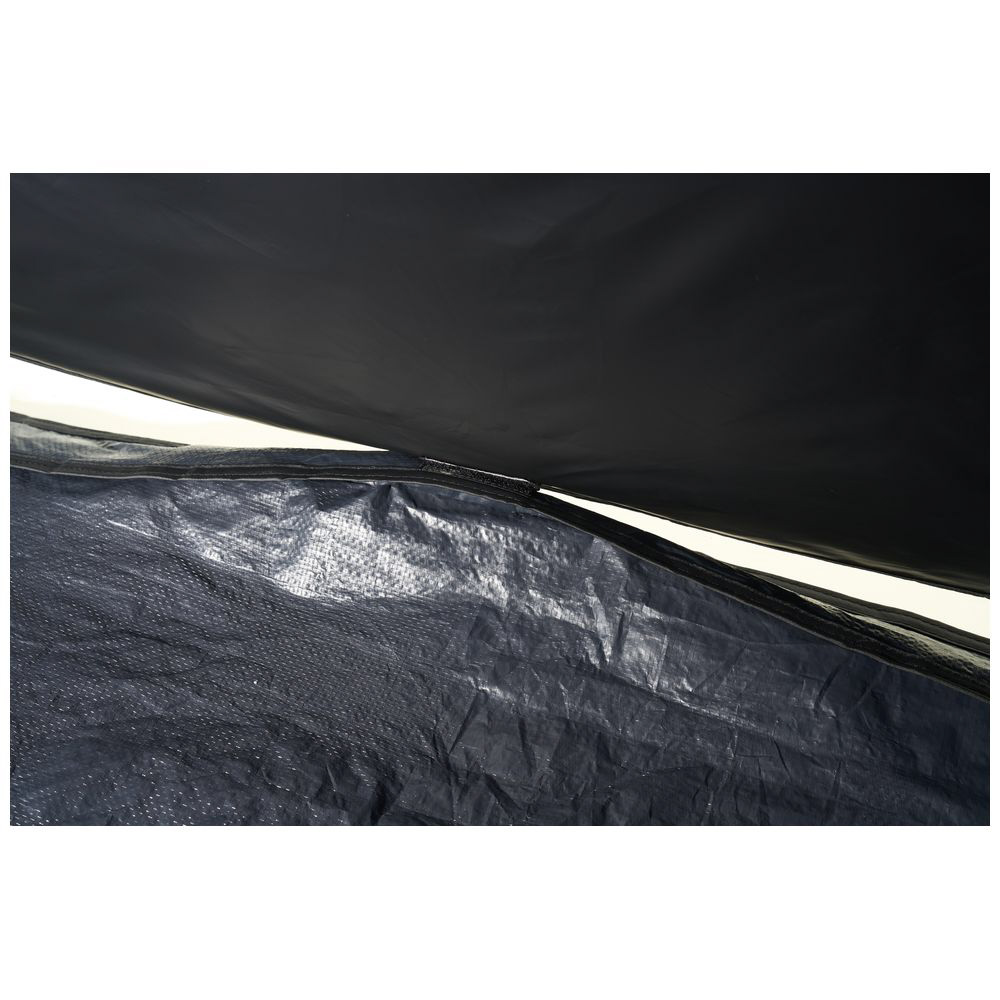 フロアシートの3辺を立ち上げた設計にすることで、砂や土の入り込みを防止しつつ、内部の熱気を効率よく逃がします。