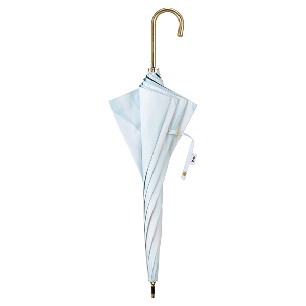 水彩絵の具で描いたような柄が魅力の日傘。落ち着いた色合いで、大人っぽい雰囲気に仕上げました。ゴールドのロゴシルクプリントと、ゴールド合皮手元が、上品な輝きを添えます。