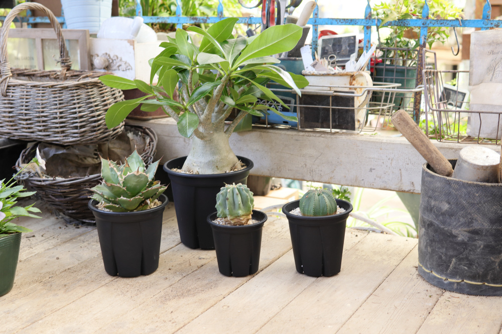地面と鉢底の間に隙間ができる足付き構造。剥がしやすい専用ラベル付き