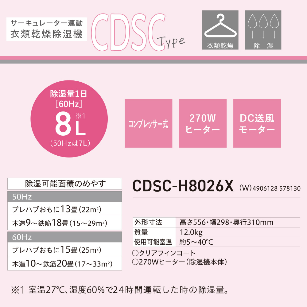 衣類乾燥除湿機 CDSCタイプ ホワイト CDSC-H8026X-W [コンプレッサー方式 /木造10畳まで /鉄筋20畳まで]
