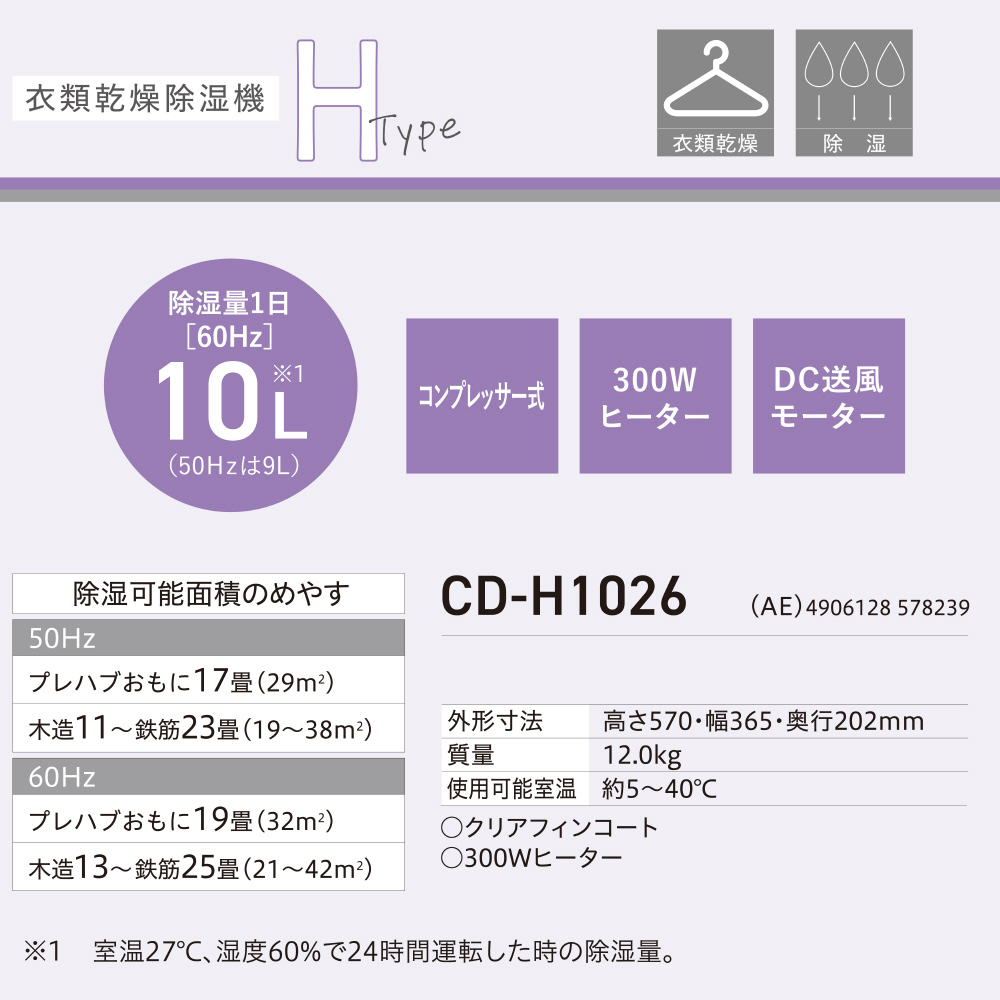 衣類乾燥除湿機 Hシリーズ エレガントブルー CD-H1026-AE [コンプレッサー方式 /木造13畳まで /鉄筋25畳まで]