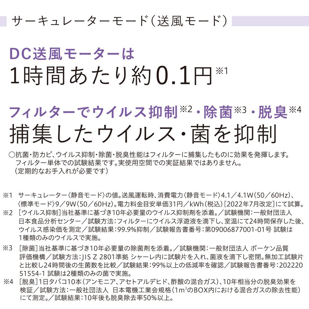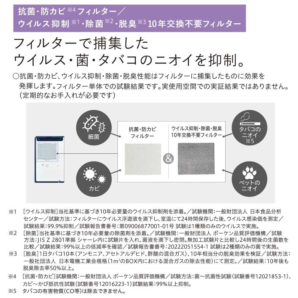 付属品 ウイルス抑制・除菌・脱臭10交換不要フィルター