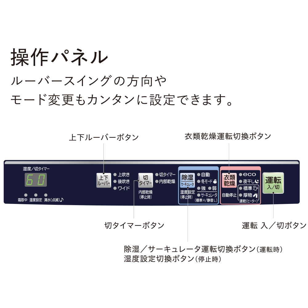 部屋干しでも快適衣類乾燥、広いリビングの除湿におすすめの大能力タイプ。