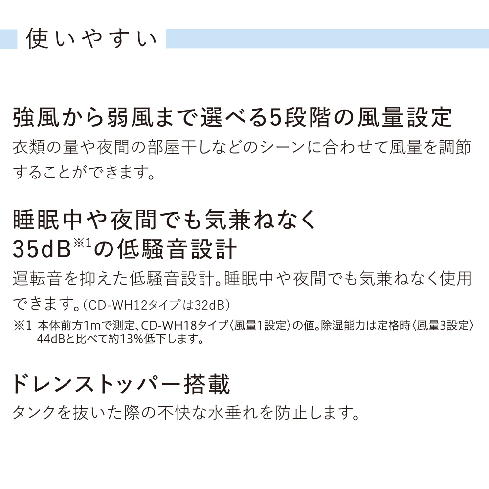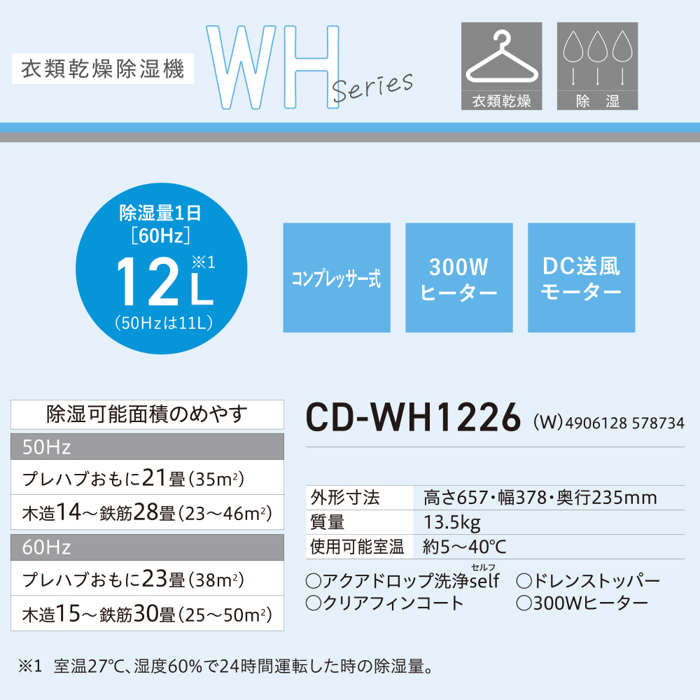 衣類乾燥除湿機 WHシリーズ クリスタルホワイト CD-WH1226-W [コンプレッサー方式 /木造15畳まで /鉄筋30畳まで]