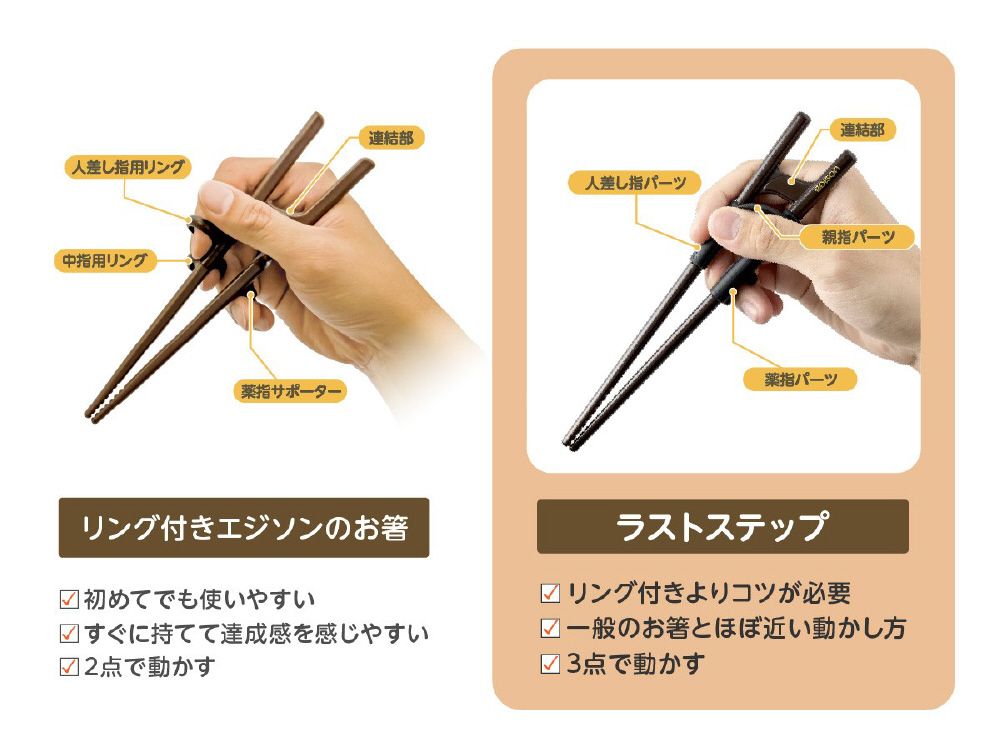 エジソンのお箸ラストステップは、お箸のマナーや手指の器用さを育むために、作業療法士と共同開発されました。