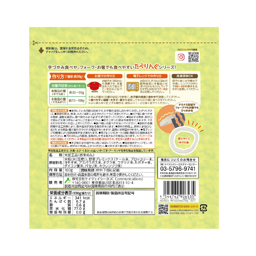 原材料名 米粉(米)、野菜プレミックス(ケール末、ブロッコリー末、ヨモギ末、アスパラガス末、オクラ末、コマツナ末、カボチャ末、ダイコン葉末、パセリ末、ホウレンソウ末)