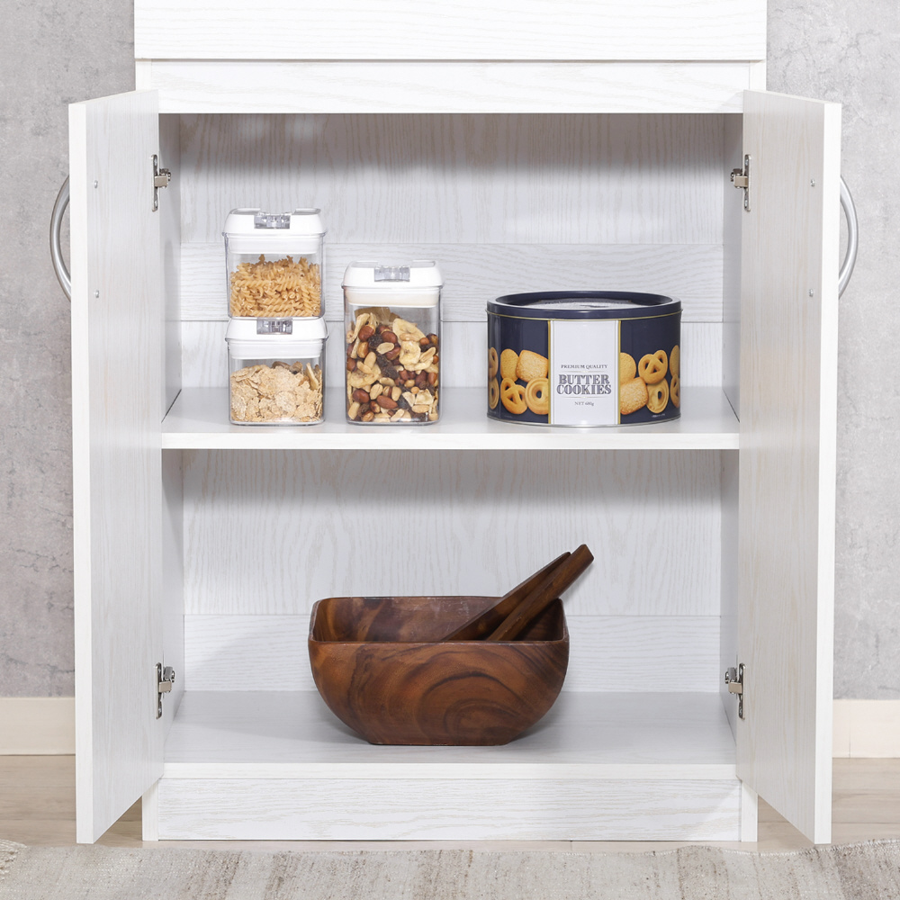 下段にはお鍋や大皿などをたっぷり収納。扉付きで生活感を隠します。