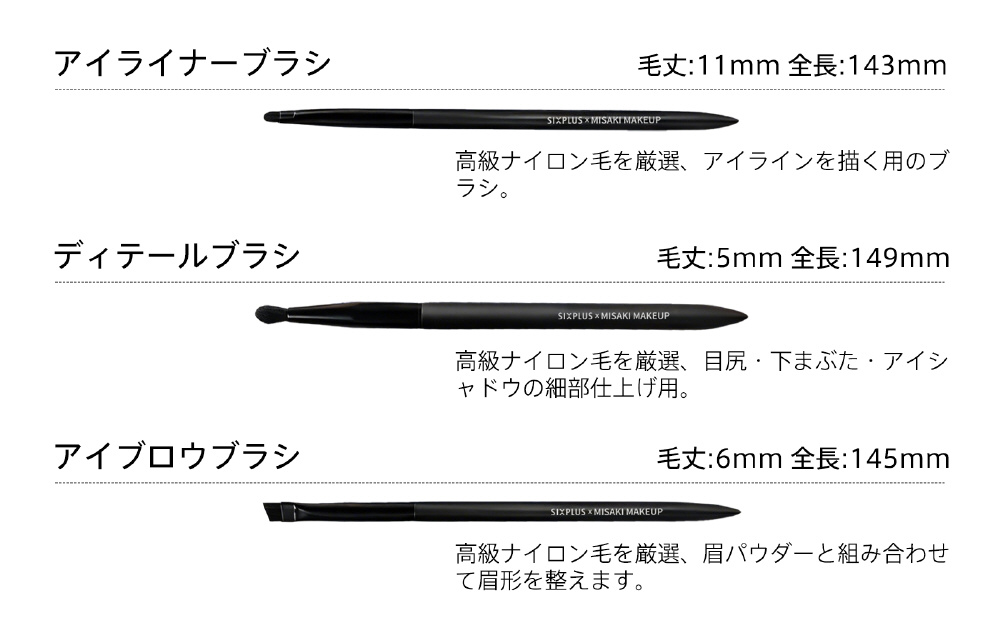 ■「細部まで繊細に仕上げ」ディテールブラシは目尻や下まぶたの繊細なライン、アイシャドウのグラデーションまで、細かい部分をきれいに描き分けられます。アイブロウブラシは自然な眉形をすっきり整え、立体感のある仕上がりをサポート。