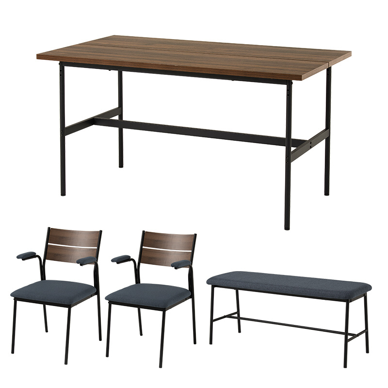 ダイニング4点セット (幅135cmテーブル&肘付きチェア2脚&ベンチ) 机:ブラウン×椅子、ベンチ:ブラウン×ダークグレー LT-3204BR-06DGY-4S