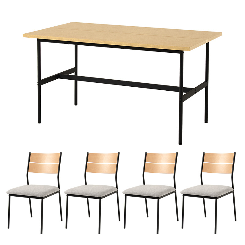 ダイニング5点セット (幅135cmテーブル&肘無しチェア4脚) 机:ナチュラル×椅子:ナチュラル×ライトグレー LT-3204NA-05LGY-5S