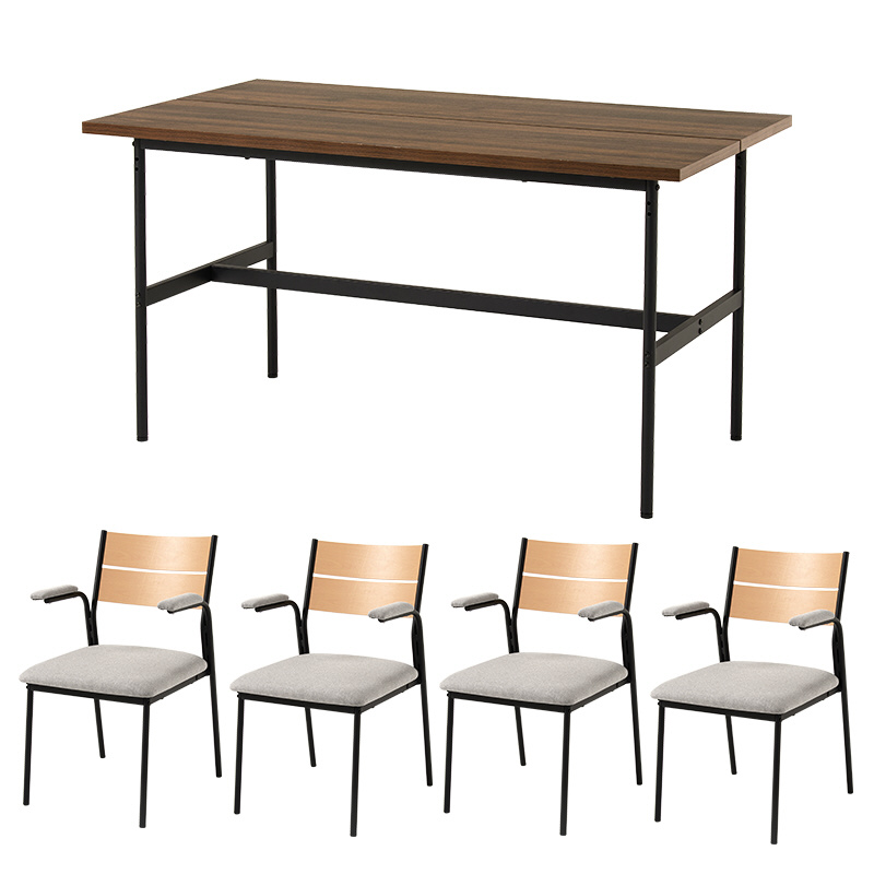 ダイニング5点セット (幅135cmテーブル&肘付きチェア4脚) 机:ブラウン×椅子:ナチュラル×ライトグレー LT-3204BR-06LGY-5S