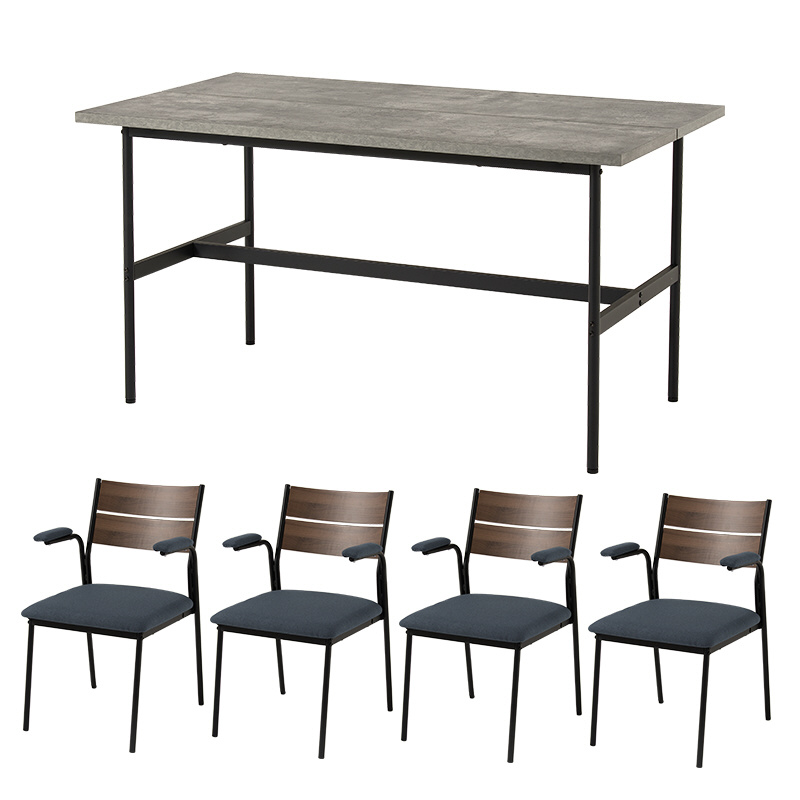 ダイニング5点セット (幅135cmテーブル&肘付きチェア4脚) 机:グレー×椅子:ブラウン×ダークグレー LT-3204MGY-06DGY-5S