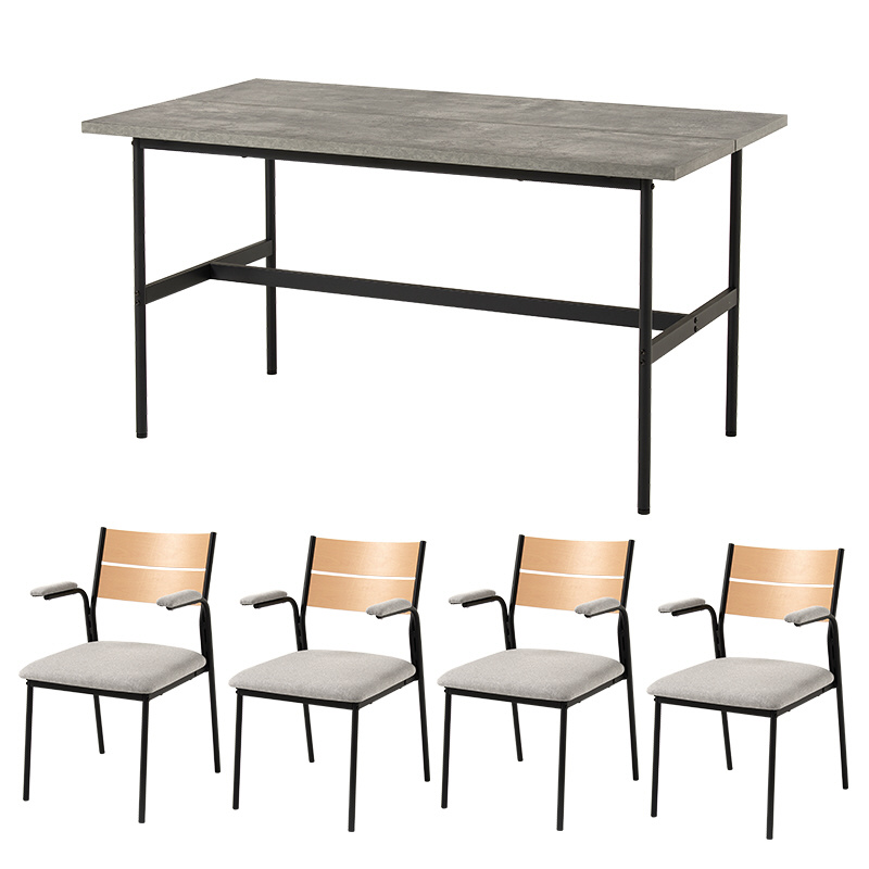 ダイニング5点セット (幅135cmテーブル&肘付きチェア4脚) 机:グレー×椅子:ナチュラル×ライトグレー LT-3204MGY-06LGY-5S