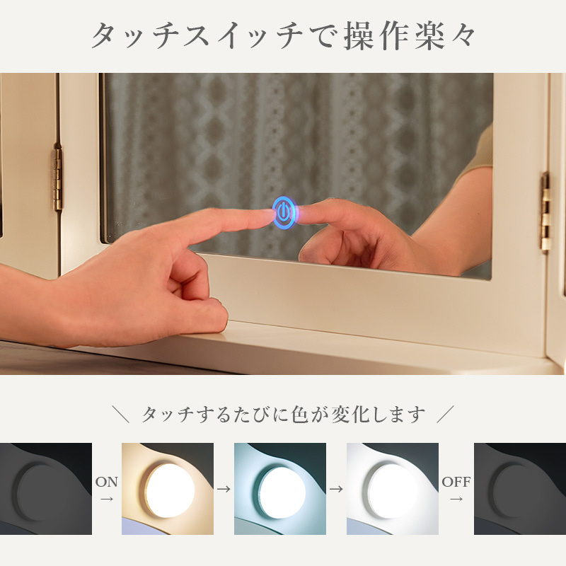 卓上ミラー ※三面鏡、LEDライト付き(約 W84×最大D27×H57cm) MD-6698-WH