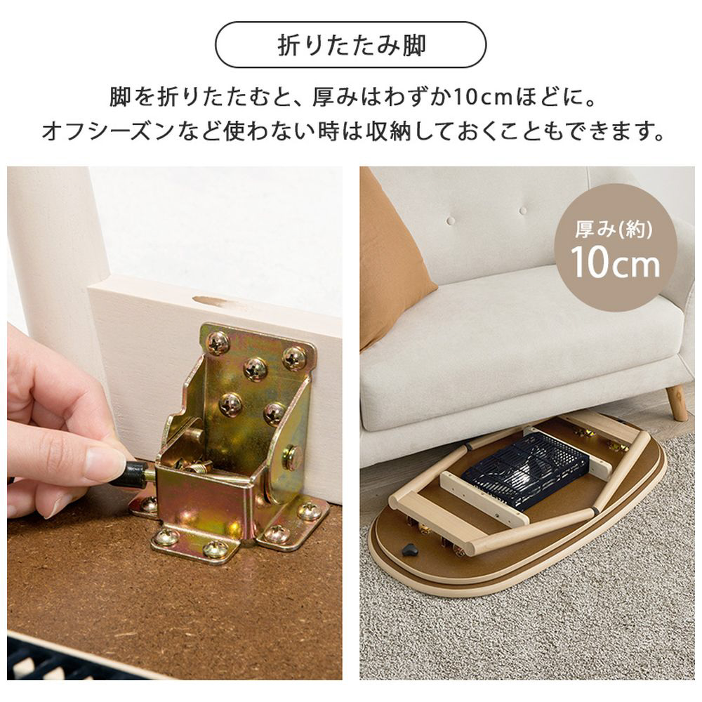 一人暮らしに最適なコンパクトサイズの折れ脚こたつテーブル。