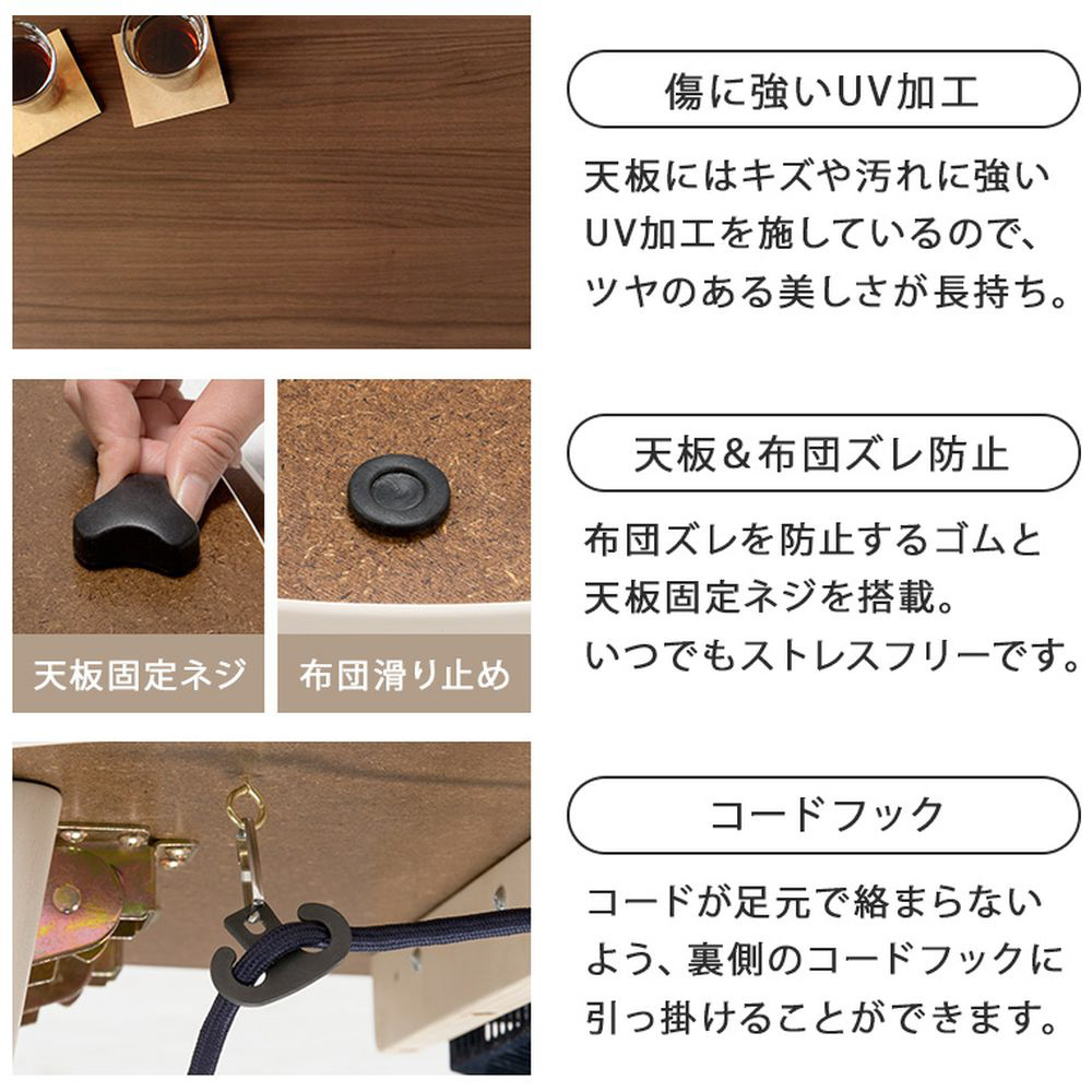 ■一人暮らしに最適なコンパクトサイズの折れ脚こたつテーブル。