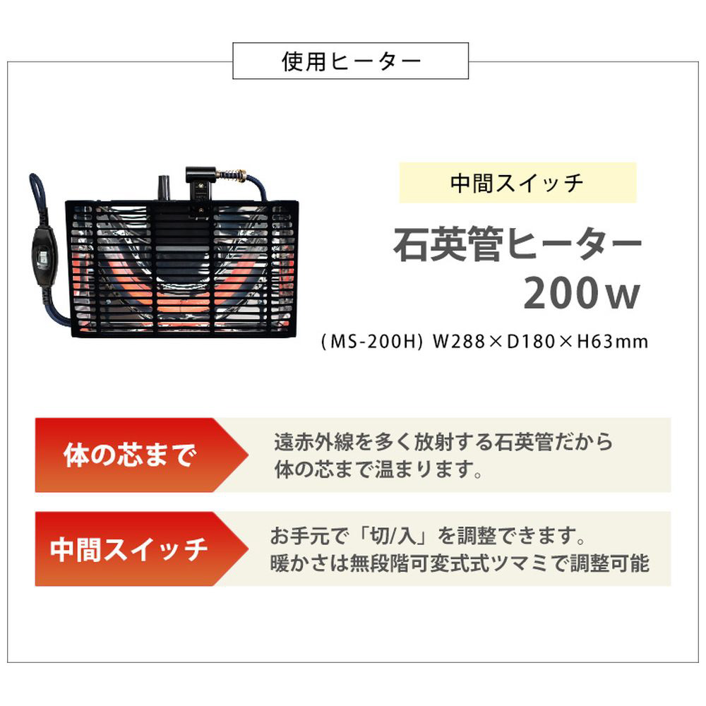 ヒーターサイズ(高さ×幅×奥行) 63×288×180mm