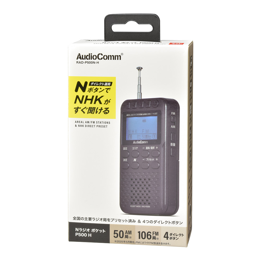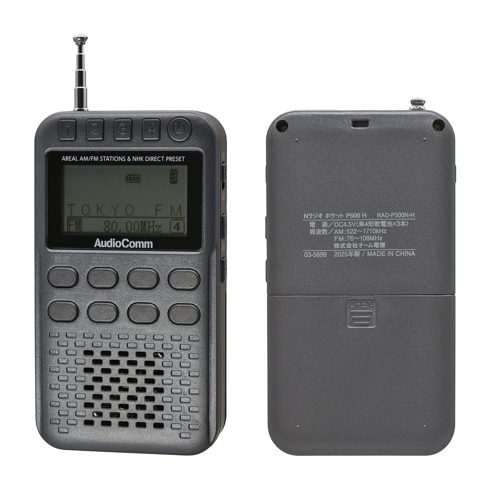 Nラジオ ポケット P500 ガンメタグレー AudioComm ガンメタグレー RAD-P500N-H [ワイドFM対応 /AM/FM]