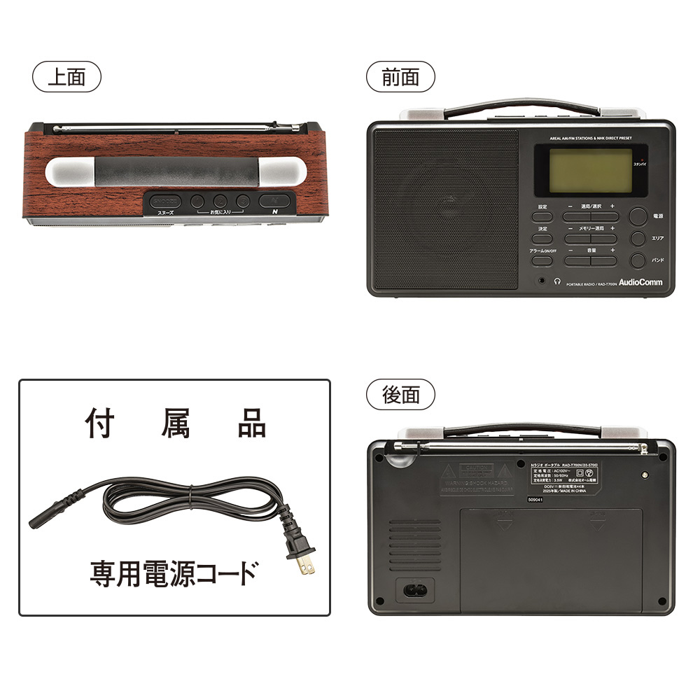 ■ 付属品:専用電源コード、プリセット済み放送局リスト、保証書、取扱説明書