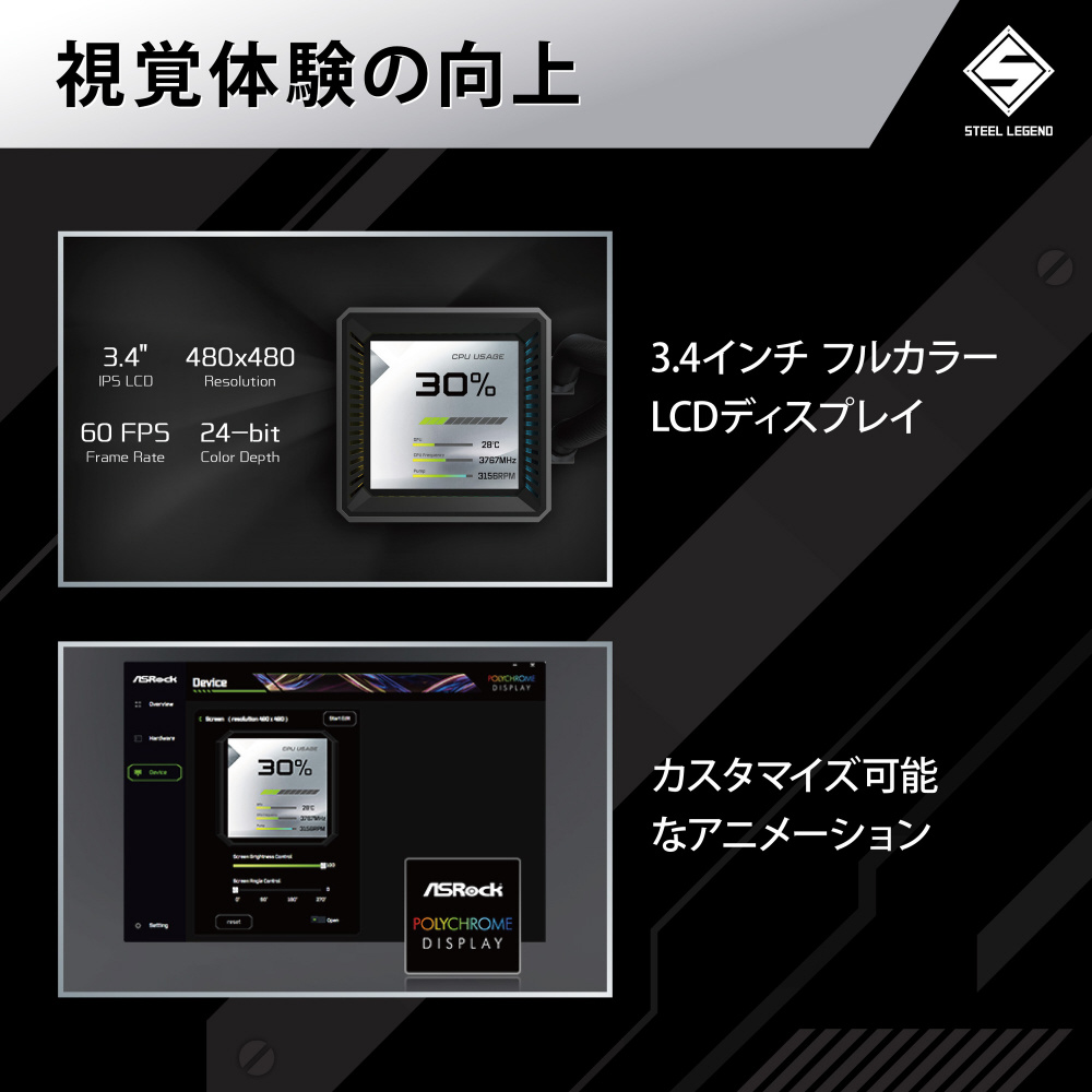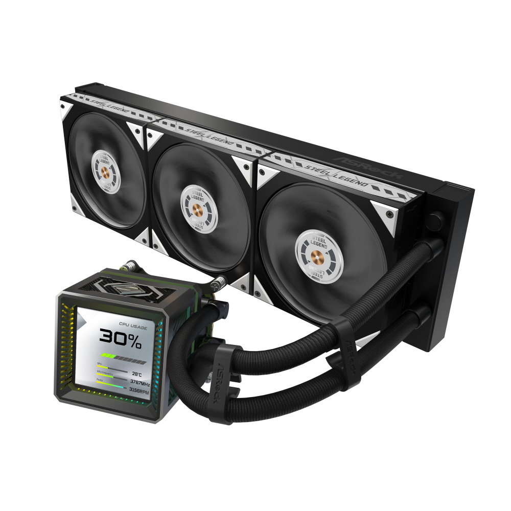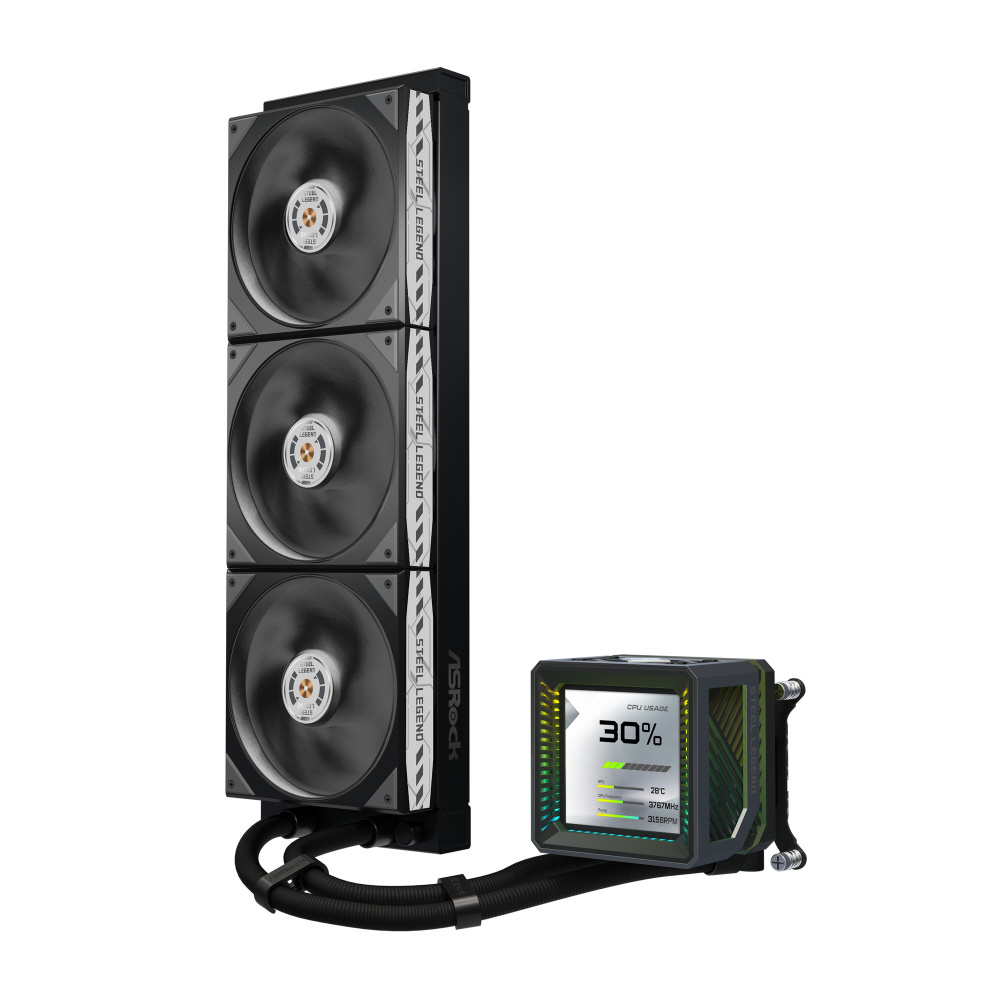 水冷CPUクーラー 120mmファンx3 [LGA1851/1700・AM5/AM4] Steel Legend Dark 360 LCD ブラック 90-ASLA36-BAAGA5
