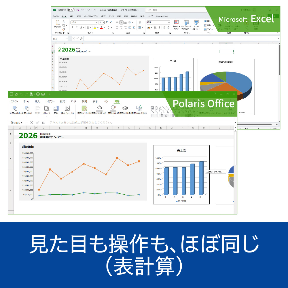Microsoft Officeと見た目も操作も、ほぼ同じ