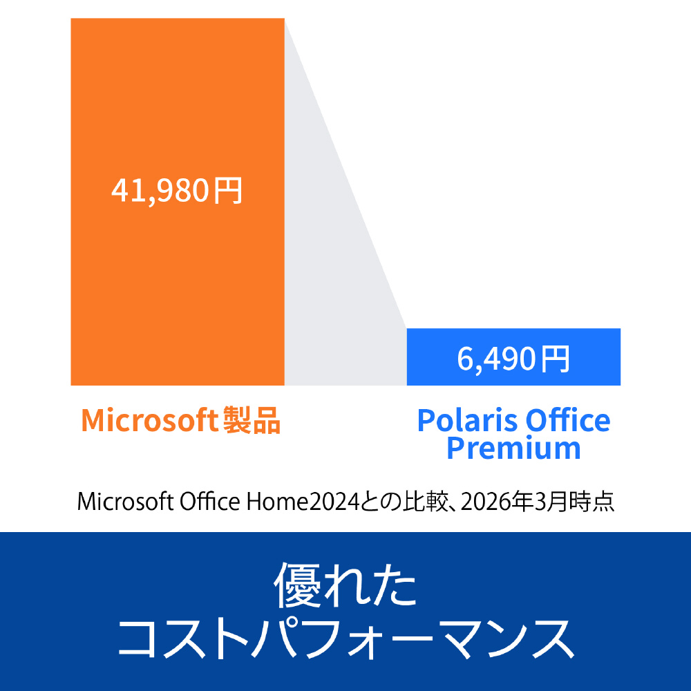 Polaris Officeは表計算・ワープロ・プレゼンテーションとPDFの作成・編集機能も搭載したお得なオフィスソフトです。MS Officeに近いメニュー画面で操作に迷うこともありません。