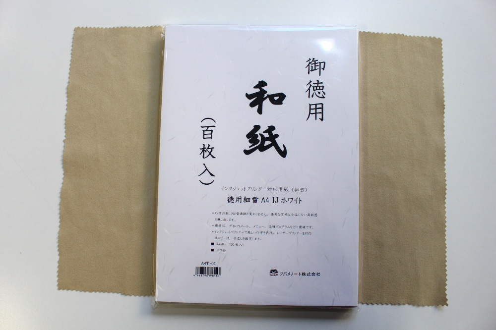 細雪(ササメユキ)という和紙です。表には雲(模様)を散らし、光の具合によって浮かび上がる高級感のある紙です。各種プログラム、ご挨拶、お礼状、メニュー表、冠婚葬祭のフォーマルな時の本文用紙としてご利用いただけます。