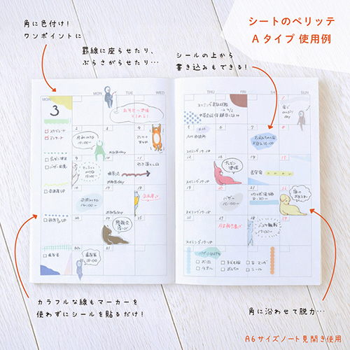 手帳やノートに馴染みやすいシンプルなデザイン。1セットに異なるデザイン入りで、シーンや用途に合わせて選べます。