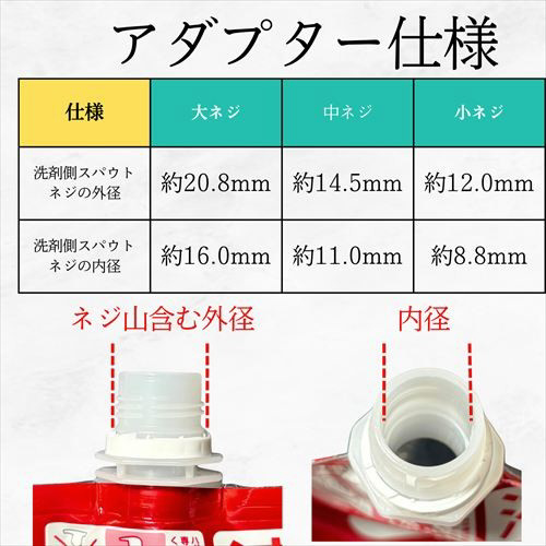 大容量アダプターのご購入前に、お手持ちの洗剤パックのネジサイズを事前にご確認ください。※サイズが不明な場合は、「ノギス」で計測してください。