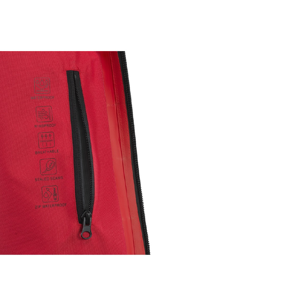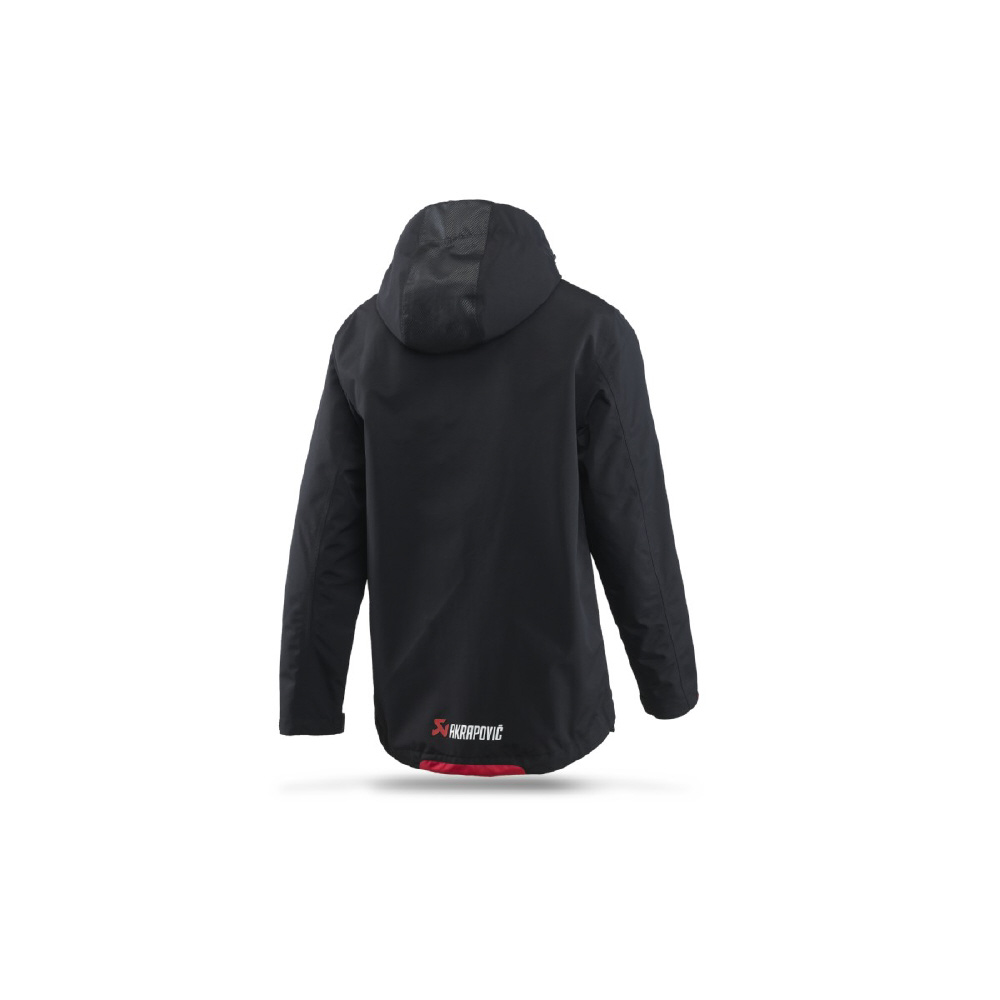アクラポビッチ製のオフィシャルフード付きレインジャケットです。耐水圧10,000mmでありながら透湿効果も備えられ、雨・雪の日でも快適な着心地を保ちます。