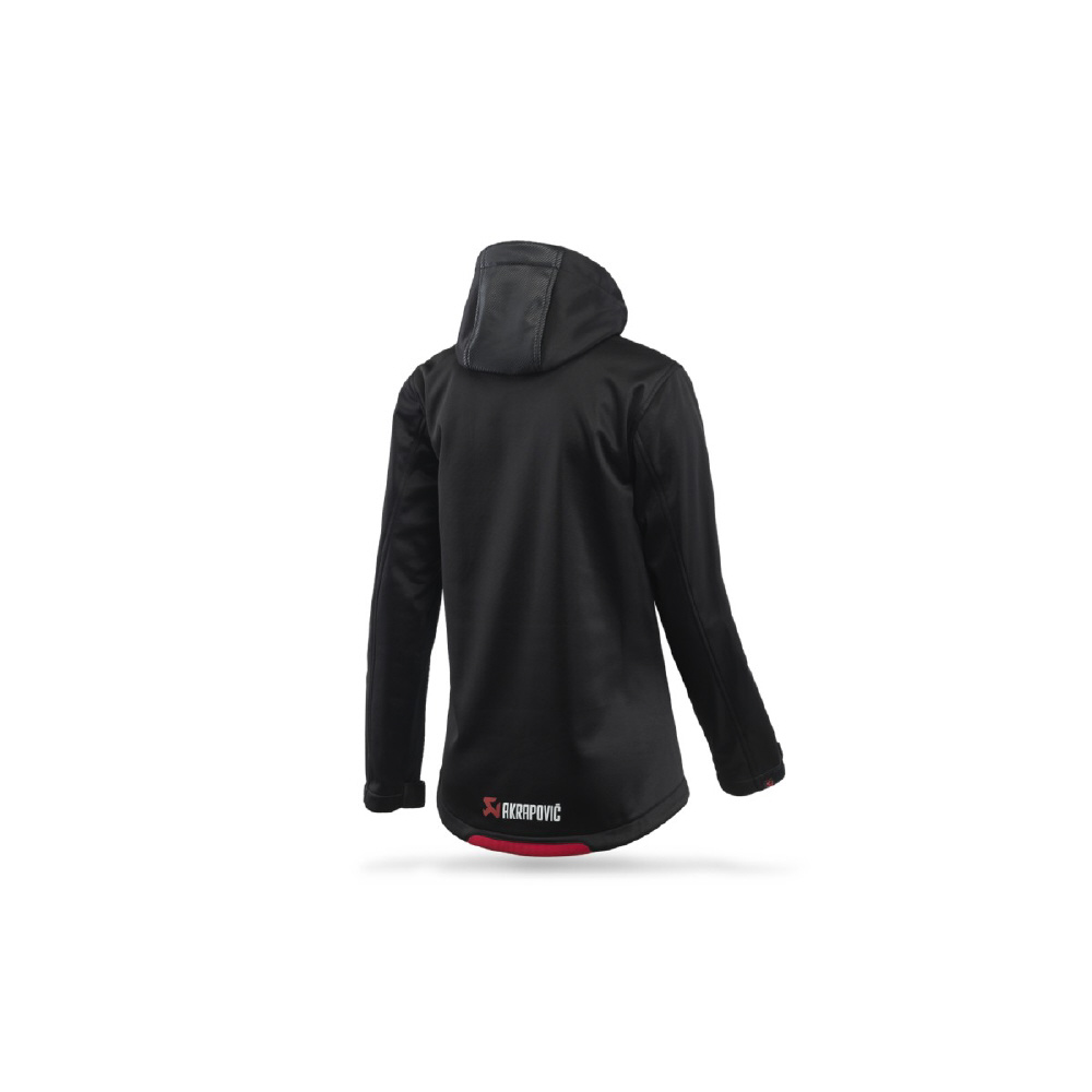 アクラポビッチ製のオフィシャルソフトシェル生地のジャケットです。バイクに乗る時など、フードは必要に応じて取り外しが可能です。