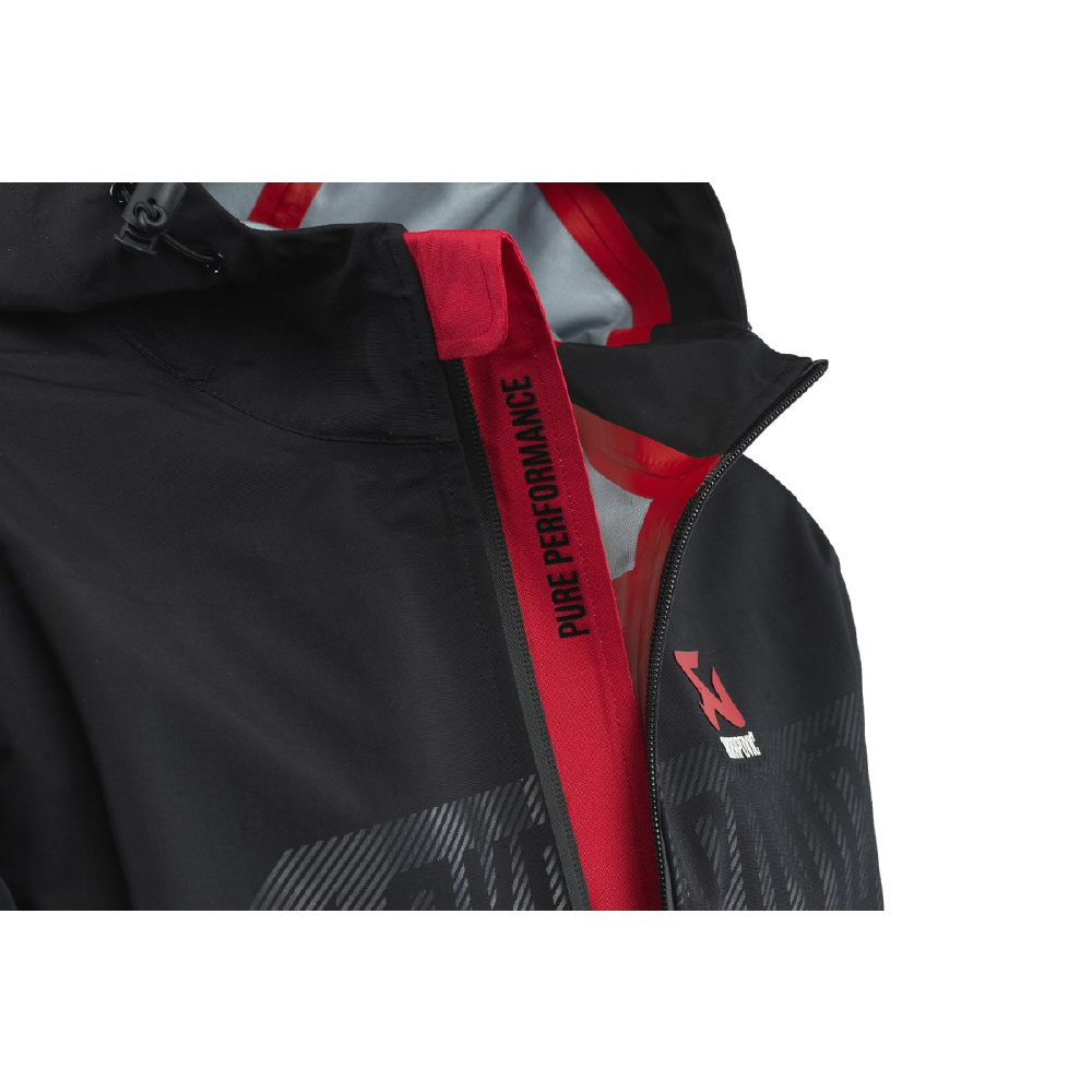 アクラポビッチ製のオフィシャルフード付きレインジャケットです。耐水圧10,000mmでありながら透湿効果も備えられ、雨・雪の日でも快適な着心地を保ちます。