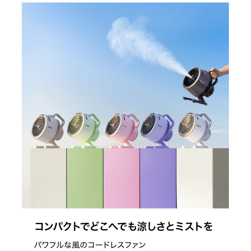 屋内でも屋外でも使えるミスト機能付きコードレスポータブルサーキュレーター