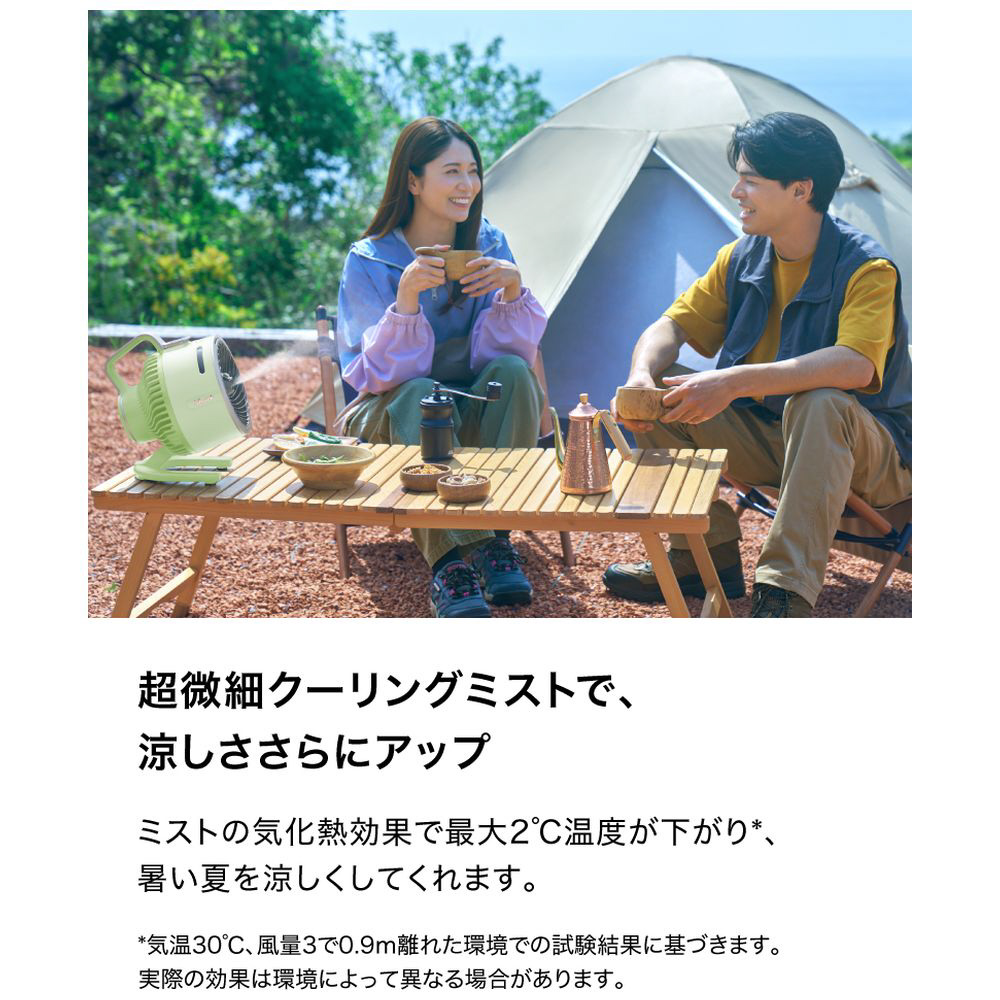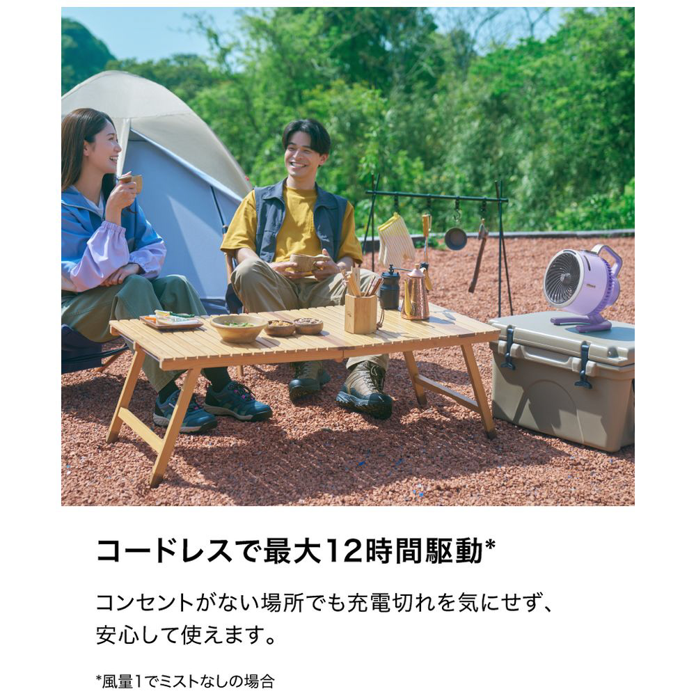 屋内でも屋外でも使えるミスト機能付きコードレスポータブルサーキュレーター