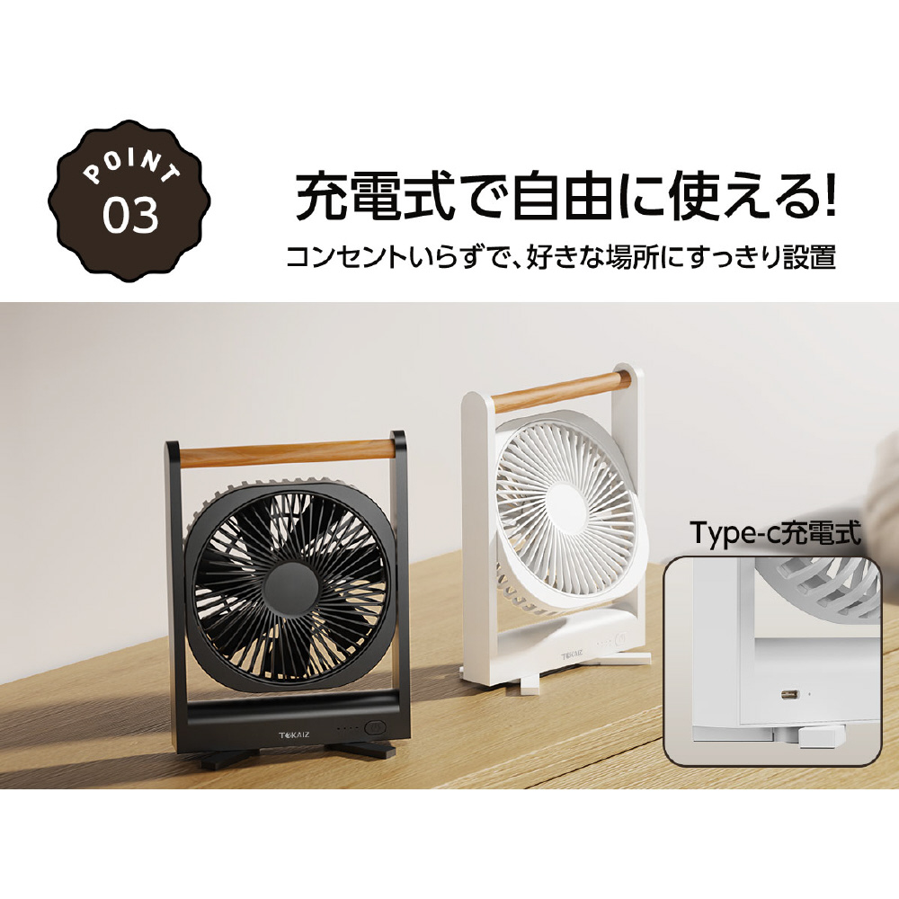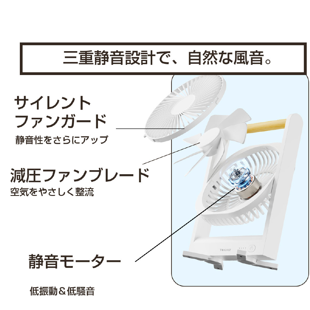 上下に自由調整できるヘッド設計で、風向きを思いのままにコントロール。使用シーンに合わせて最適な送風位置に調整できます。
