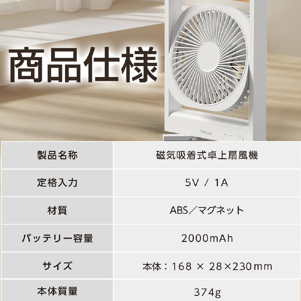 卓上扇風機 USB充電式 静音 180度回転 マグネット式 小型扇風機