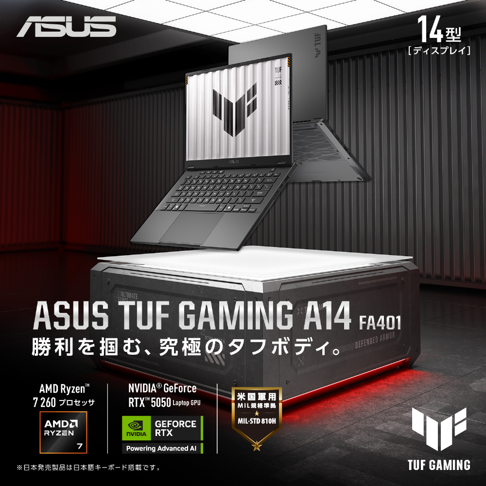 FA401UH-R7R505016G ゲーミングノートパソコン TUF Gaming A14(RTX 5050) イェーガーグレー [14.0型 /Windows11 Home /AMD Ryzen 7 /メモリ:16GB /SSD:512GB /無し /日本語版キーボード /2026年4月モデル]
