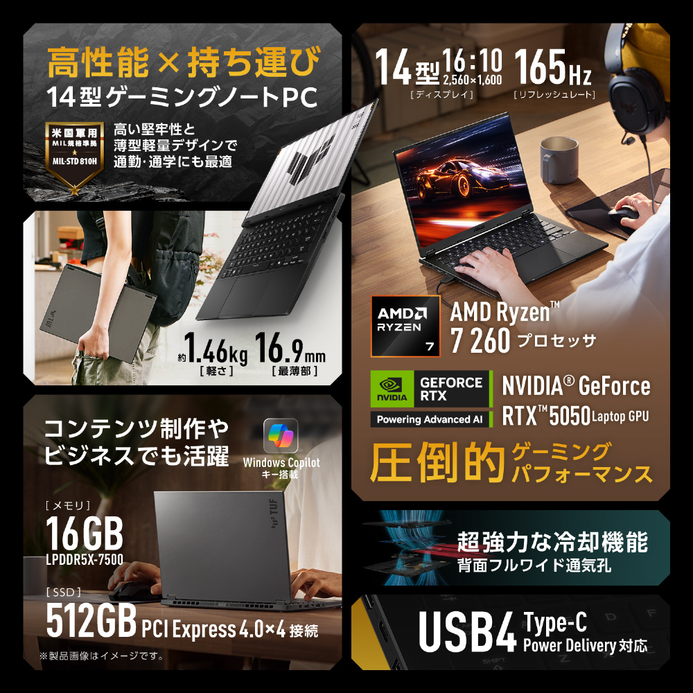 MIL規格に準拠したタフボディと優れた冷却性能を特長とし、PCゲームを愛するすべてのゲーマー、学生、ビジネスパーソン、クリエイターに