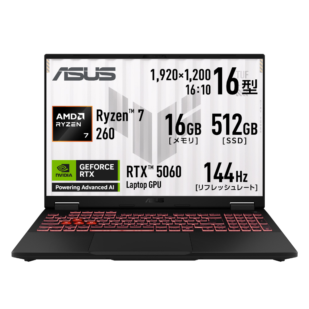 FA608UMI-R7R5060 ゲーミングノートパソコン TUF Gaming A16(RTX 5060) イェーガーグレー [16.0型 /Windows11 Home /AMD Ryzen 7 /メモリ:16GB /SSD:512GB /無し /日本語版キーボード /2026年4月モデル]