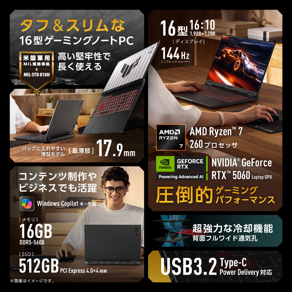 MIL規格に準拠したタフボディと優れた冷却性能を特長とし、PCゲームを愛するすべてのゲーマー、学生、ビジネスパーソン、クリエイターに