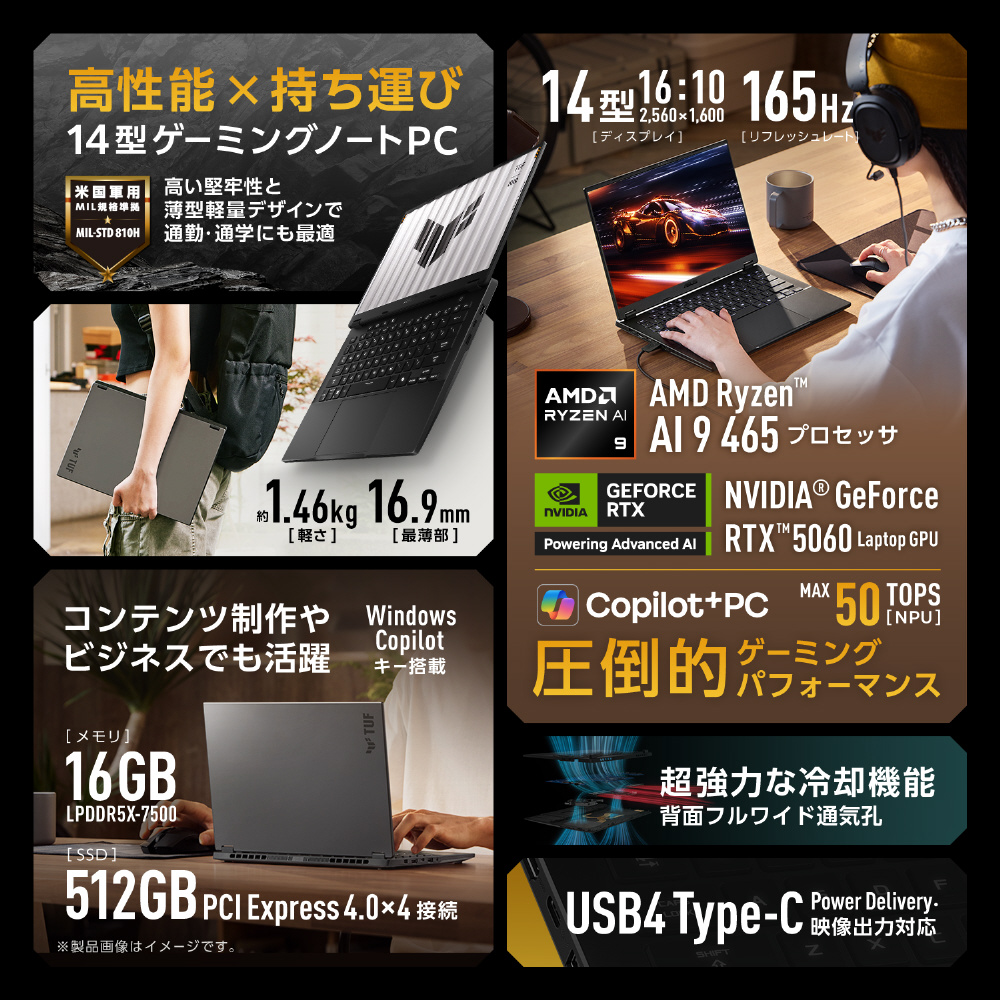 FA401GM-AI9R506016G ゲーミングノートパソコン TUF Gaming A14(RTX 5060) イェーガーグレー