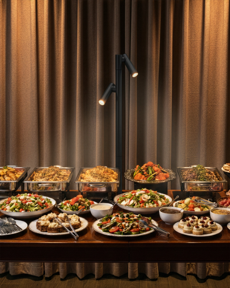 料理を美しく引き立てるピンポイントLEDビュッフェライト